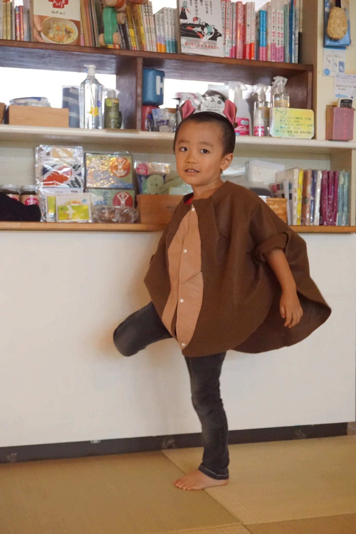 特別ゲストとして、クリスマスパーティーにも来てくれた、鼻眼鏡のお姉さんにも来てもらいハロウィンにちなんだお話を聴かせてもらいました。子どもたちも大人もお話の世界に一気に引き込まれ、みんな夢中でした。ただ座ってお話をきくのではなく、お話を進める中で子どもたちとの対話があったり、子どもたちの手助けが必要だったりと無理なく自然に子どもたちがいつの間にかお話の中に入ってしまう。そんな独特な世界観が私は大好きです。彼女は、浅野令子さんという女優さんで、0歳の赤ちゃんから大人の人まで一緒に楽しめる絵本シアター『おいでおいで♪』を定期的に主催されています。とっても楽しいので、みなさまもぜひぜひ遊びに行ってみてください!